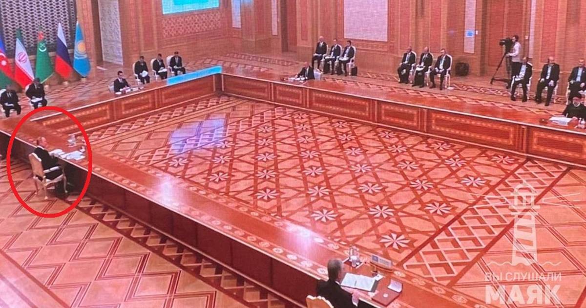 “Eh? A sinistra, il vertice del Gruppo dei Sette con nove persone al tavolo. A destra la vetta del Mar Caspio con Putin. Ci sono cinque persone al tavolo. Qualcuno ha scritto perché sono così lontani?”